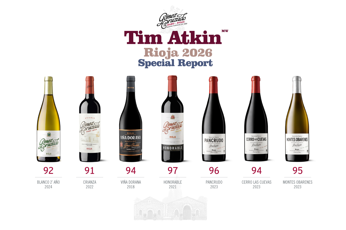 Gómez Cruzado es una casa centenaria ubicada en Haro. Fundada en 1886, es hoy la bodega boutique del Barrio de la Estación. Un equipo joven que apuesta por el estilo de ‘vino fino’ tradicional de Rioja.